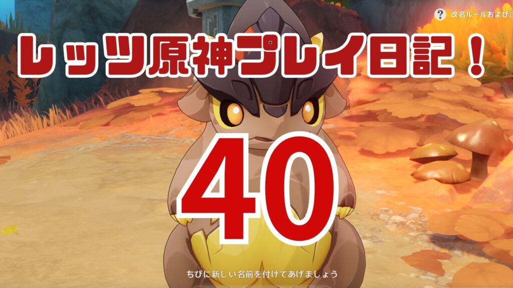 パイモンが早速美味しそうな名前をつけたんですけれど、どうやらドラゴン本人は432さんに名前をつけて欲しいようです。「こいつのネーミングはちょっとアレやぞ!」とパイモンが正論を言ってきたのですが(そもそも432さんは本当はゴリラ大王という名前の予定だったのでネーミングセンスはお察しです)、本人の希望なら仕方ないよな!ちなみにこれ、名前に書き換え制限があるから後からぽんぽん変えられないそうです。
