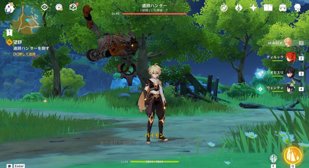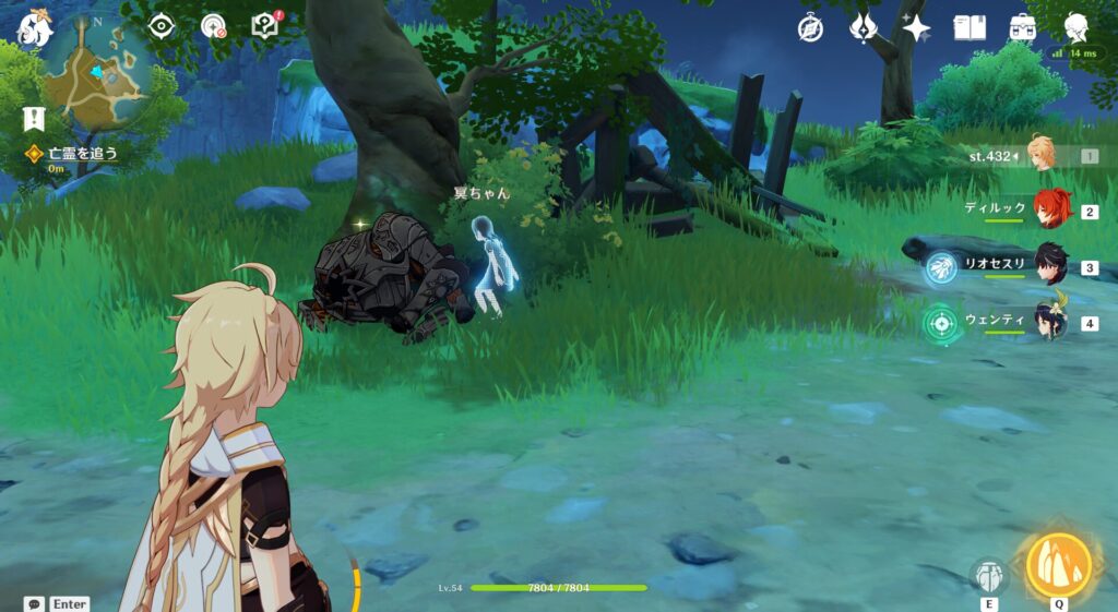 なんと幽霊ちゃんがお遊びで遺跡ハンターのボディを乗っ取って襲いかかってきました。遺跡ハンターというのはいっつも道端でしばいている遺跡重機の上位互換でして、うちのパーティーでコイツとまともにやりあえるのはエースアタッカーのディルックさんとリオセスリニキだけです。早い話がかなり危険な敵ということです!