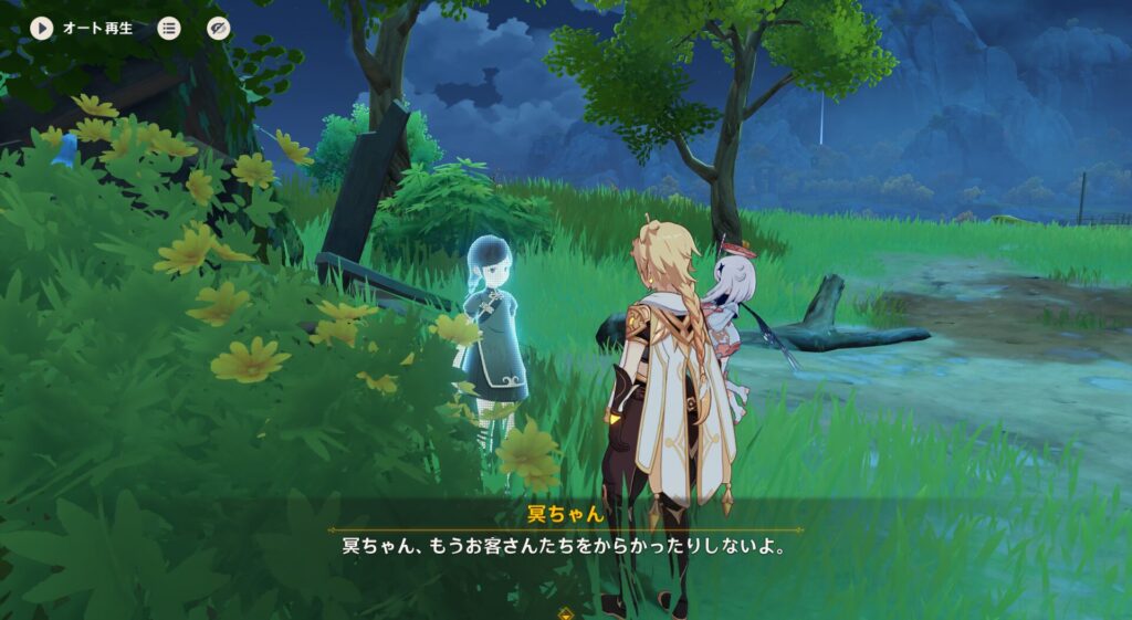 あ、でも子供の霊っぽいからそんなすさまじい害とかはないんじゃないか?!けど、オバケが嫌いな奴ってむしろ子供の霊の方を怖がったりとかしますから、あの子をどうにかしない限りはもうどうにもなりません。ていうか、画質が原神だから何とか耐えたけど正直僕もオバケはムリです。だから言笑さんの気持ちはすげー分かる…