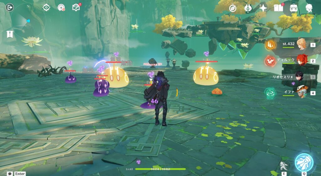 そんなわけでナチュラルに432さんに掃除を頼んでくるちゃっかりババアに言われて仕方なくスライムとかを掃除していましたところ、パイモンから面白い話が出ました。ここにあった蜘蛛の素、全部元素でできているらしいんですよ。