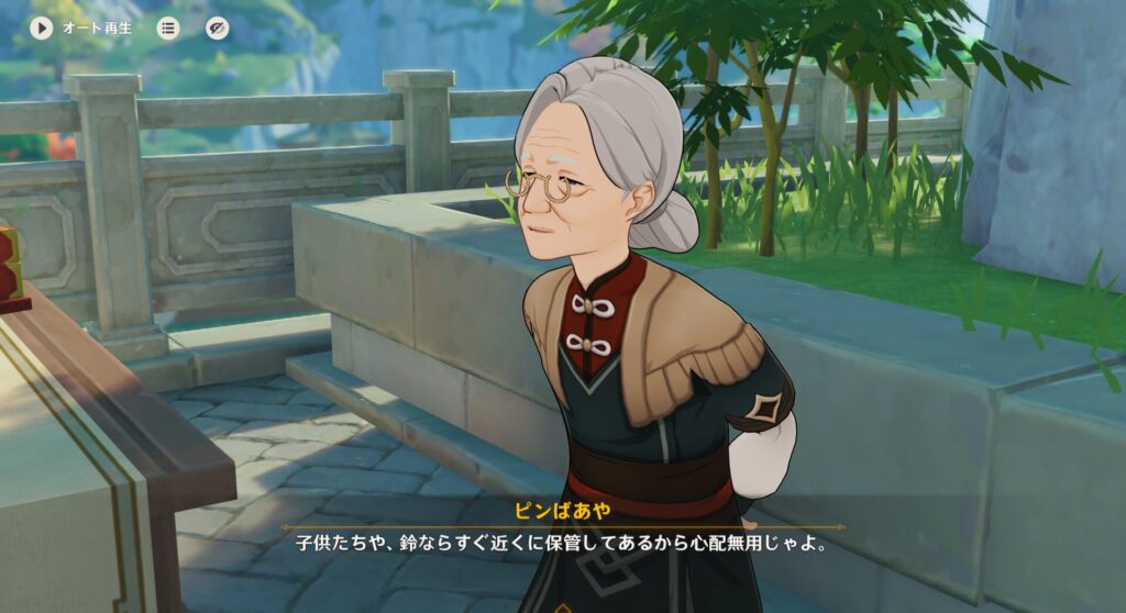 こんな婆ちゃんが町中にポンといるの璃月フツーに怖くない…?まあ星外生命体が言うなって話ですけれども