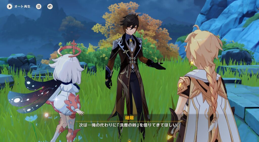洗塵の鈴というアイテムがいるらしいんですけれど、これはショップで買えるものではなく、ピンばあやという鍾離先生の友達が保管しているそうです。ばあやは玉景台の近くに住んでるらしいよ。