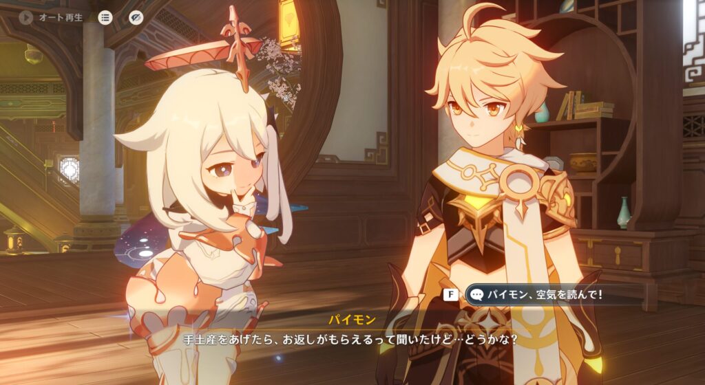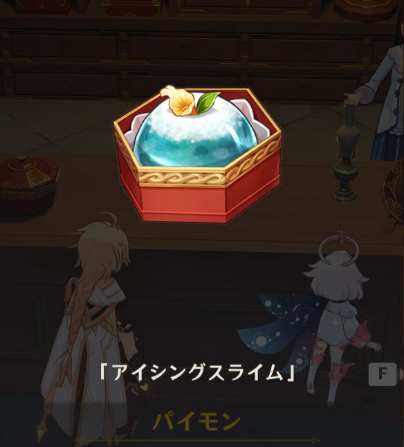 さて前回は刻晴に教えてもらって群玉閣の行き方も分かりましたところで、パイモンの提案により凝光お嬢様に手作りプレゼントを持っていこう!という話になりました。で、それはええねんけどそのプレゼントの内容っていうのがまた不穏なんですよ。あの…アイシングスライムとかいうスイーツ?らしいんですけれど…