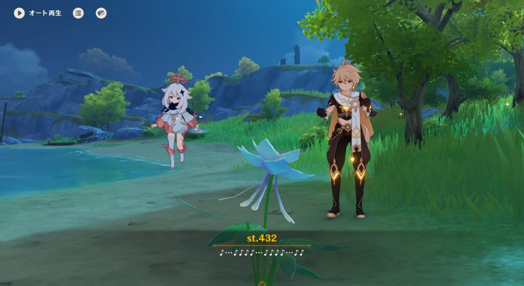 そもそも瑠璃百合って魔神戦争以前から地上にたくさんあって、テイワット人の歌を聞いて香りが強くなるとかいう植物ですよね。で、星外生命体である432さんが歌ったところいい感じのアイテムに変化しました。そして気になるのが、鍾離とパイモンは歌おうとしなかったところです。