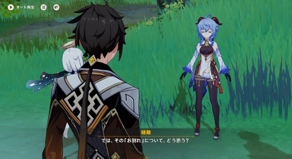 まあそれはさておき、甘雨が偶然ええ感じの瑠璃百合を持っていましてそれをくれることになりました。この時、「安心して、歌ったのは璃月の民謡」と言うてきたんですよ。ということは、さっきの432さんのは歌った種族ではなく歌った歌がやばかったということか?!となると問題は432さんのあの歌って誰から習ったのかですが…十中八九バルバトスかバーバラちゃんだと思うんだ…やっぱその辺の歌が何かヤバいんだな?!