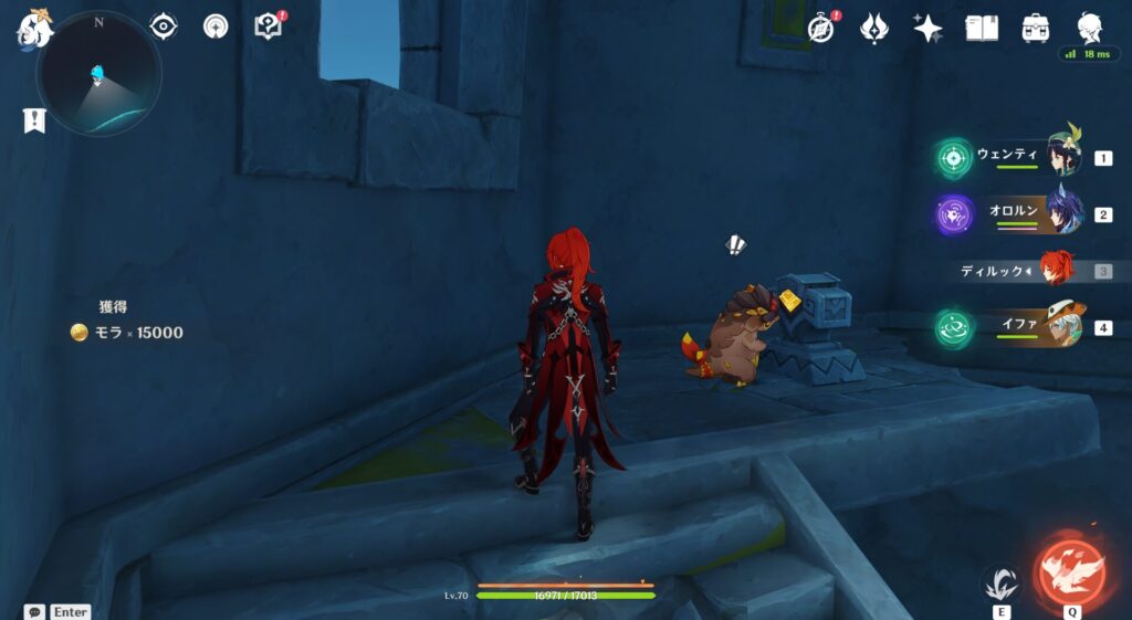 これ最初、元に戻る方法分かんなくてだいぶパニクったぞ…わざわざ1回1回七天神像にワープして解除してましたからね。こういう操作関係の説明をもっとしっかりして欲しいよな…!未だにナタのドラゴンとかスメールの草とかよく分かってないよ…!