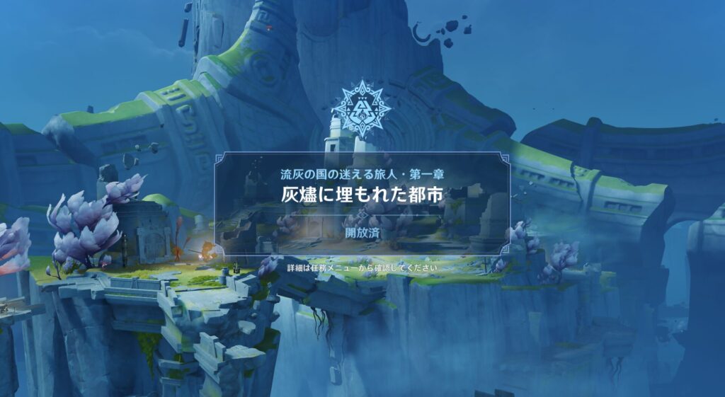 ちょっとその辺が謎ですが、「とりあえずこの遺跡入っちゃおうぜ!」という話になりまして、ついでにさっきの迷惑ドラゴンもブン殴ろうみたいな感じになりました。ここで『流灰の国の迷える旅人・第一章 灰燼に埋もれた都市』がスタートしてしまったのである…!