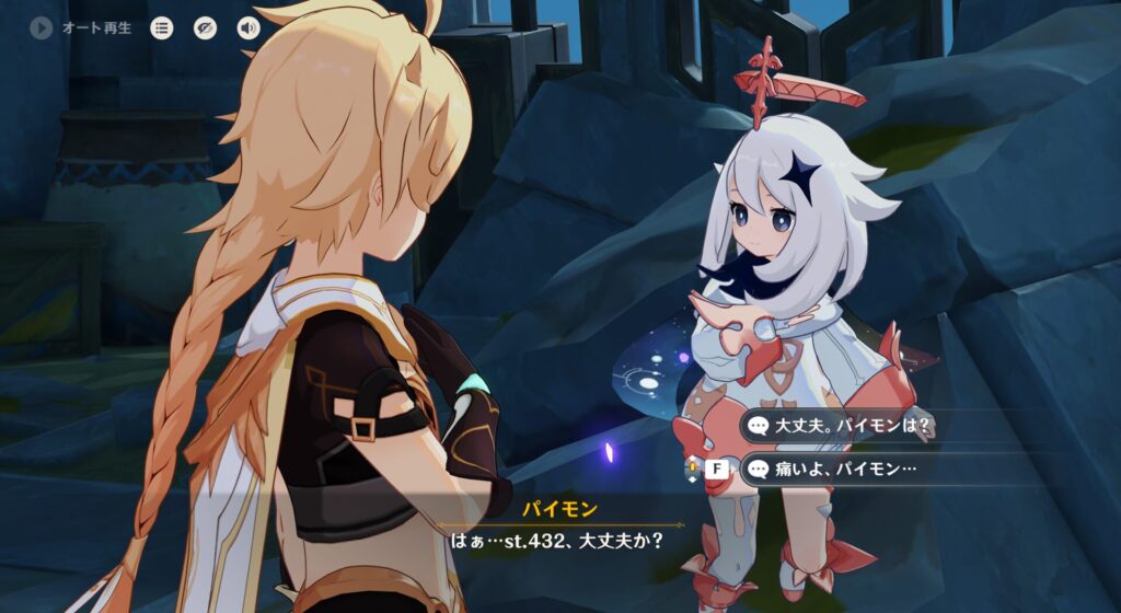 でも一応パイモンに心配されたので、仮病を使って反応をみてみる星外生命体。