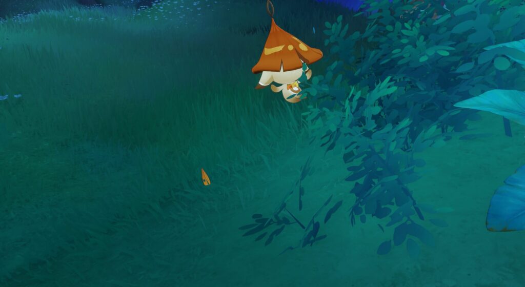 スメールは草神の支配する国ですが、キノコ多い気がするんだよな。キノコと砂漠の国。ちなみに道端を歩いていると、あからさまにキノコの妖精じゃねーか!みたいな生き物がぴょんぴょこしていまして、パイモンもびっくりしていました。コイツです。