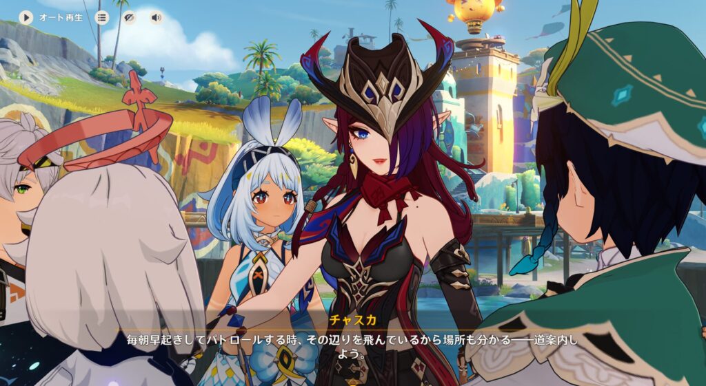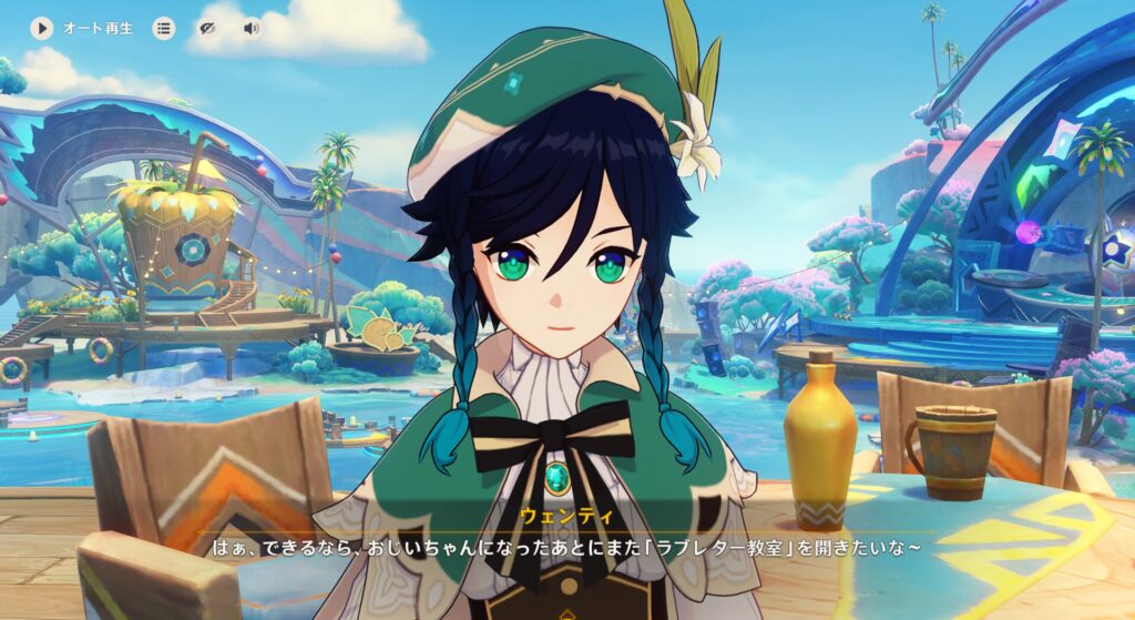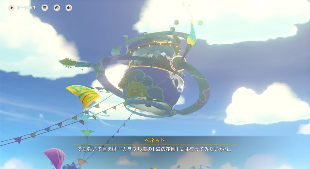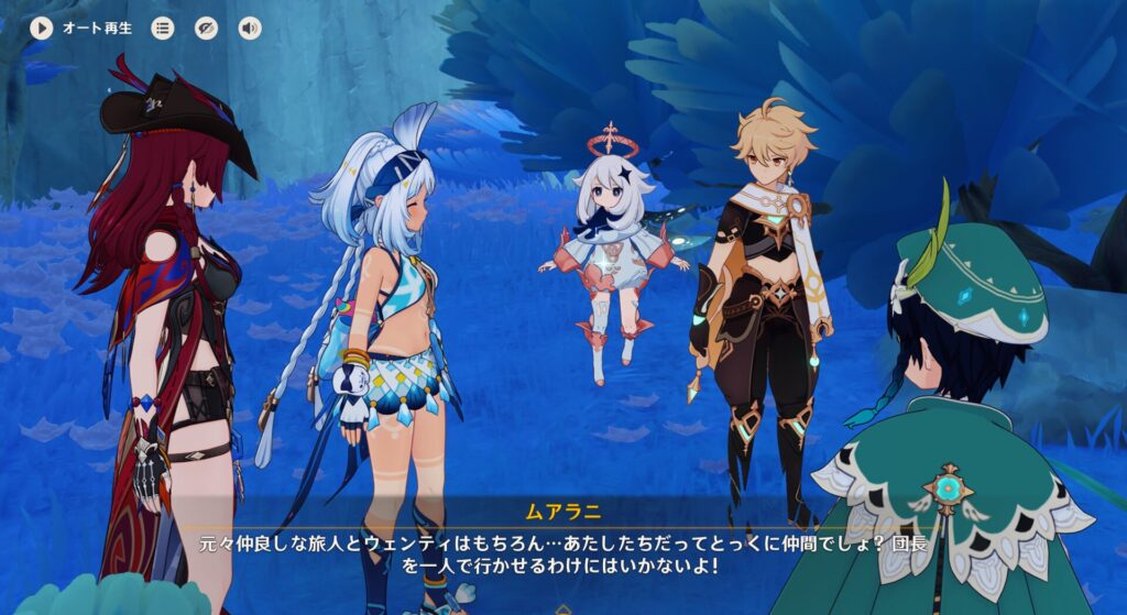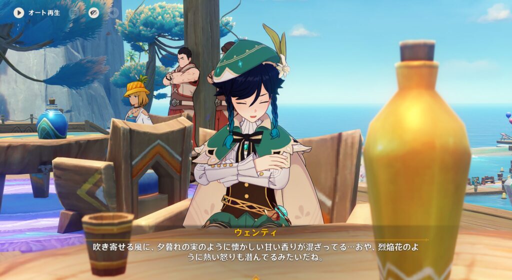 で、バルバトスことウェンティはナタの友達に会ってからリゾートに行くよ!とのことなので合流は数日遅れるんだとか。あいつ、ナタに友達いんの?!ナタに行こうと思うと璃月、スメールを超えることになるはずなので、いくらフッ軽とはいえそこまで行くことあるか…?それに、住所不定のあいつがメール友達みたいなもんを持っているとは思えないし…うーん、謎だな。