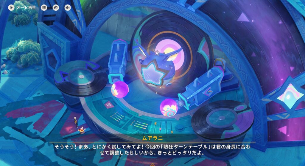 このDJターンテーブルはこんな感じの視界になってまして、これも別途ミニゲームで使います。