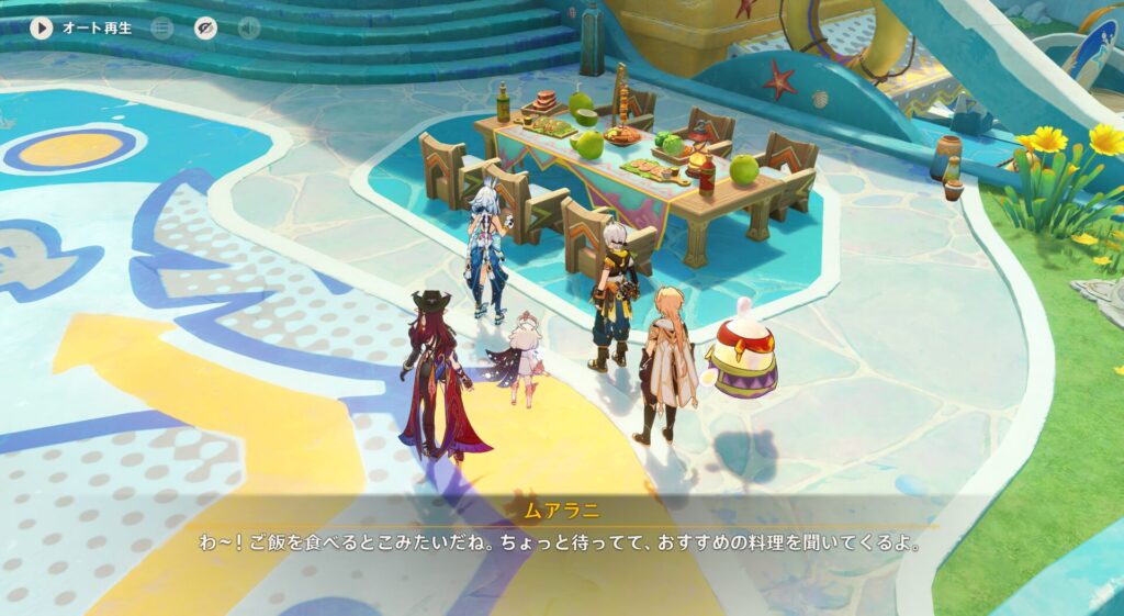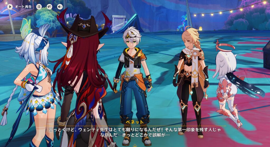 前回は2025年の夏イベ、のんびりナタののびのびサマーだかわくわくサマーだかが始まりました。冒険者協会随一のバッドガイであるベネット団長、ナタ女子ムアラニちゃんとチャスカちゃんと共にリゾートで遊んじゃおうぜ!みたいな感じですね。今のところはフツーのバカンスを満喫です。