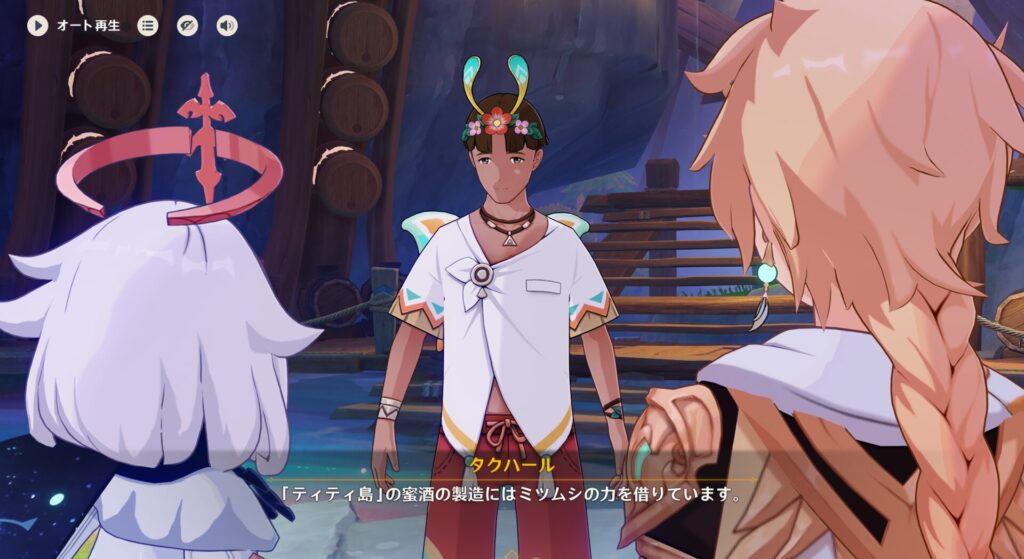 ここでティティ島の蜜酒はモンドの酒とは違ってミツムシを使うといった話をされます。でもそもそも、モンドの酒ってどうやって作ってるの?って話ではありますよね。ディルックさんは醸造設備を所持しているというのは伝説任務で知りましたが、あの敷地内のどこにも見当たらねーもんな。地下にあるのかな…