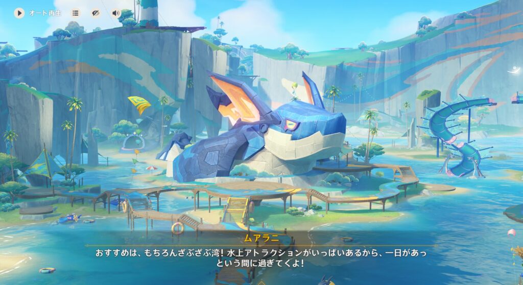 さて、今日からは皆が行きたいというアトラクションを1つ1つ回っていくことになるんですけれど、まず向かったのはムアラニちゃんオススメのざぶざぶ湾です。ウォーターアトラクションぽいからスッゲー滑り台とかそういうのがあるんでしょうか。