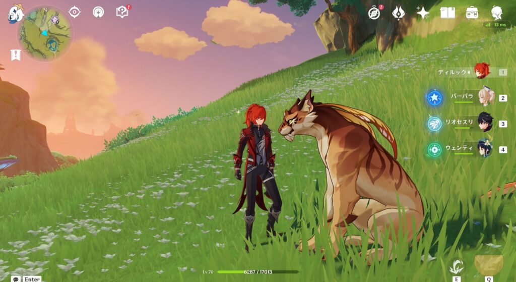 ライオンみたいな幻獣とディルックさんが仲良くしてるだけの写真です。璃月の北部に行くとこういう見たこともない生き物いっぱいいるんだよな。あそこは金魚の女仙、浮錦が力を持っているところですから、そういう仙人パワー的なものが関係しているのかもしれませんね。多分だいぶ後になるけど、あそこも大きめの世界任務あるからいつか行きます!