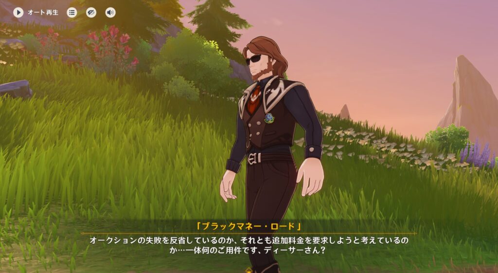 まあそんでブラックマネーロードなんですけれど、どうやらなかなかのやり手らしく尻尾が掴めないようです。国外からの購入と輸送、競売関係者の連絡とかも全部部下がしてまして、品も色んな手段で転々とさせていて足がつかないんだとか。でも少し前に千岩軍と協力してブラックマネーロードの拠点をだいぶ潰したというのが、さっきのエドラー捜査官との話です。