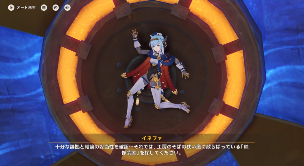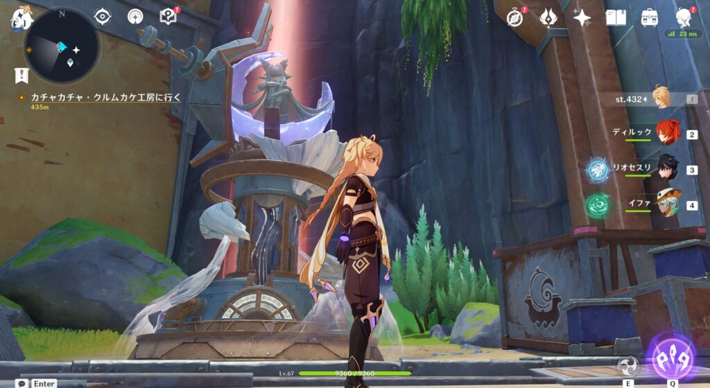 なんかちっちゃいロボットを集めてなんやかやしたら機械のロックが外れるらしいので、ハロみたいなのをピクミンのように集めて何とかしました。ちなこいつら、この工房のセキュリティらしいわ。もっと強そうなのにせんでええの?!フォンテーヌで野良マシーナリーとか拾ってきたらいいのに!