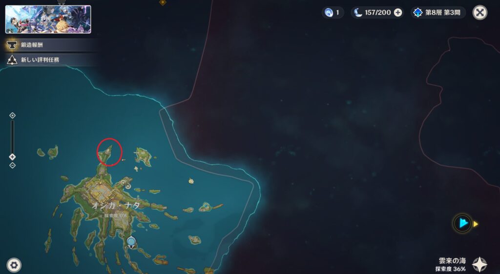 当然のごとくナドクライで起きるイベントですので、現地へ向かいましょう!まずはナタの最北端、マップの赤い丸のところに行きます。