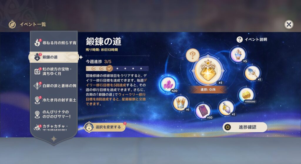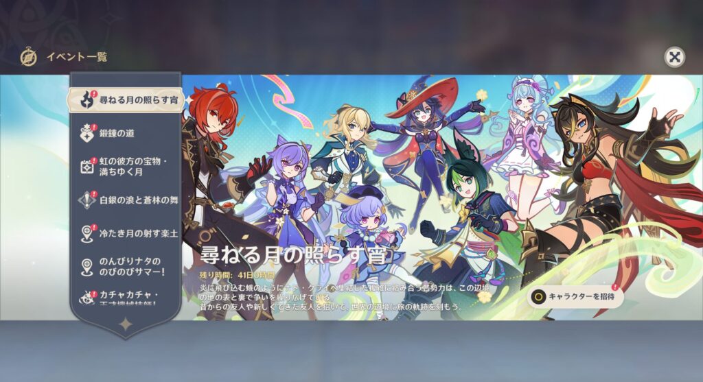 ていうか、恒常の☆5って全然いないんだようち…!そもそもガチャも開催ごとに連発して引くタイプじゃないですからね。理由ないとガチャ引かない上に、基本キャラ性能で引かないからな。いやそろそろ岩属性は誰か引かないとヤバいんだけれども…!