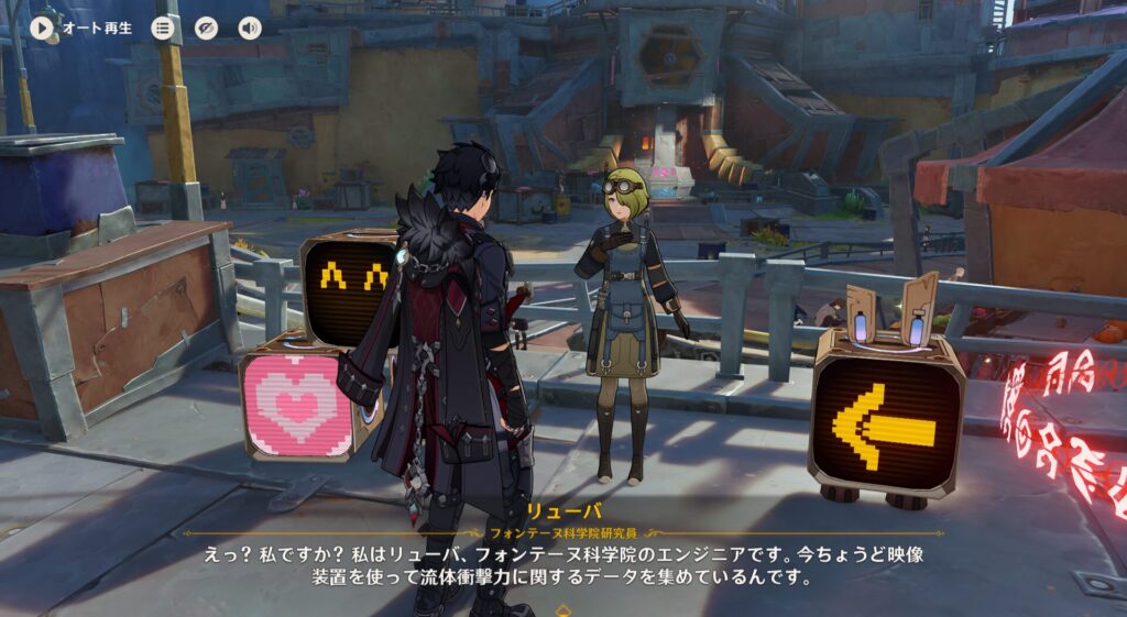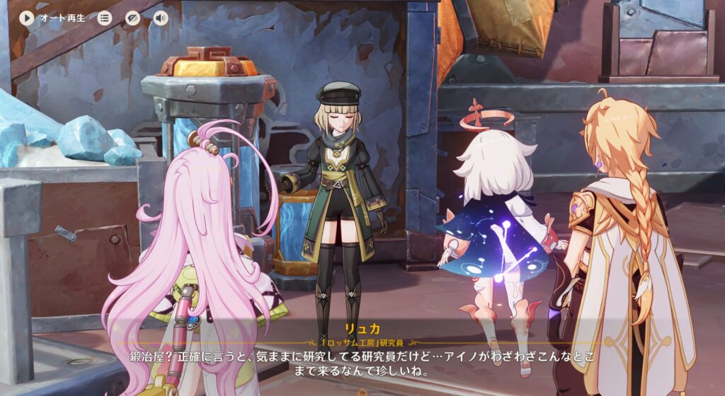 どうやらこの町は「ナドクライ人」みたいなのが住んでいるというよりは、色んな国から来た商人だの技術者だの研究者だので構成されている感じですね。例えばフォンテーヌのエンジニアさんなんかがいます。