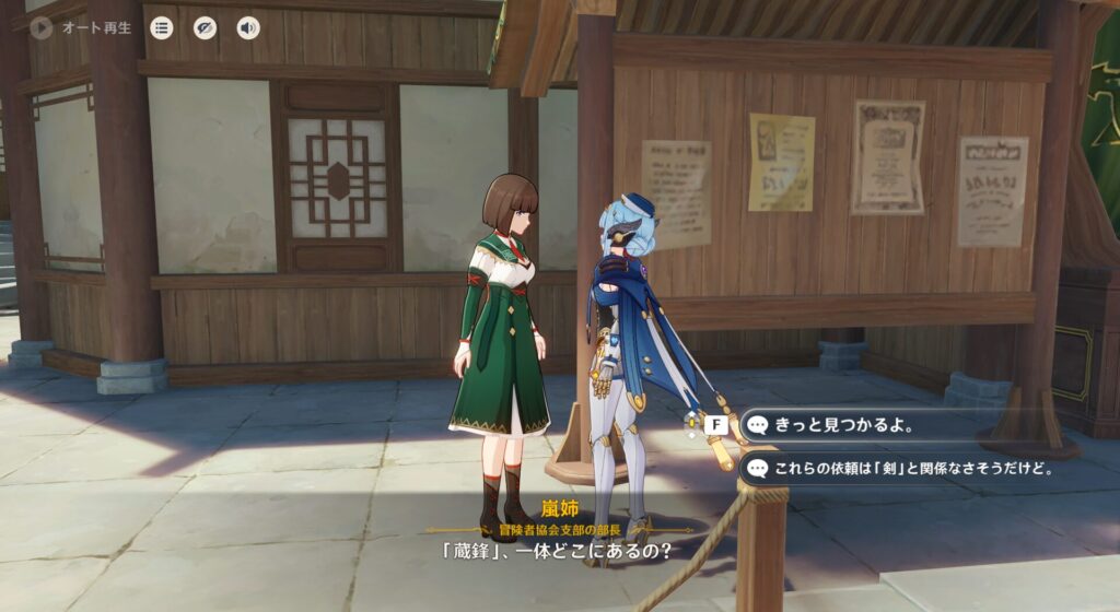 嵐姉は冒険者のお兄さんを亡くしているんですけれど、その兄の遺品の蔵峰っていう剣をずっと探しているんですよね。確か、兄貴が死んでた時に手元に剣がないとかだったかな。何回か剣探しをお供したんですけれど、未だに見つかってないです。