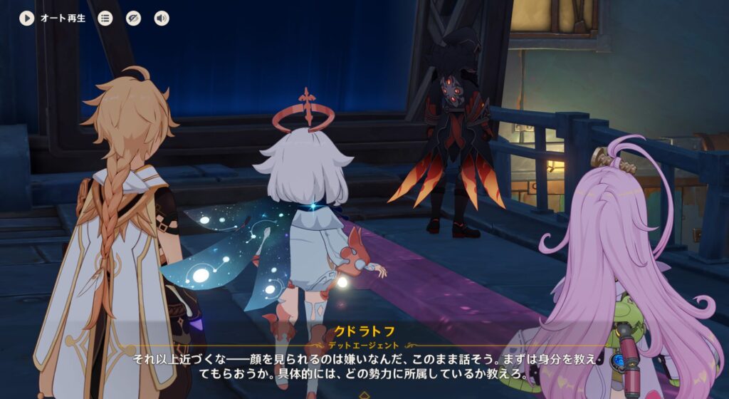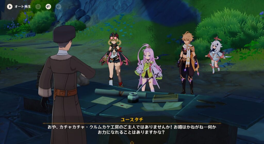 脳筋もびっくりするほどザルな作戦を提案してきました。あのね、悪いことする奴って何も悪いと思ってないからするのよ。例えば432さんは暴力に任せてフィールドで一生懸命生きているだけのヒルチャールをボコしたり、目が合っただけのファデュイを殴ってカツアゲしたりしますが、悪いって思ったこと1回もないもんな。
