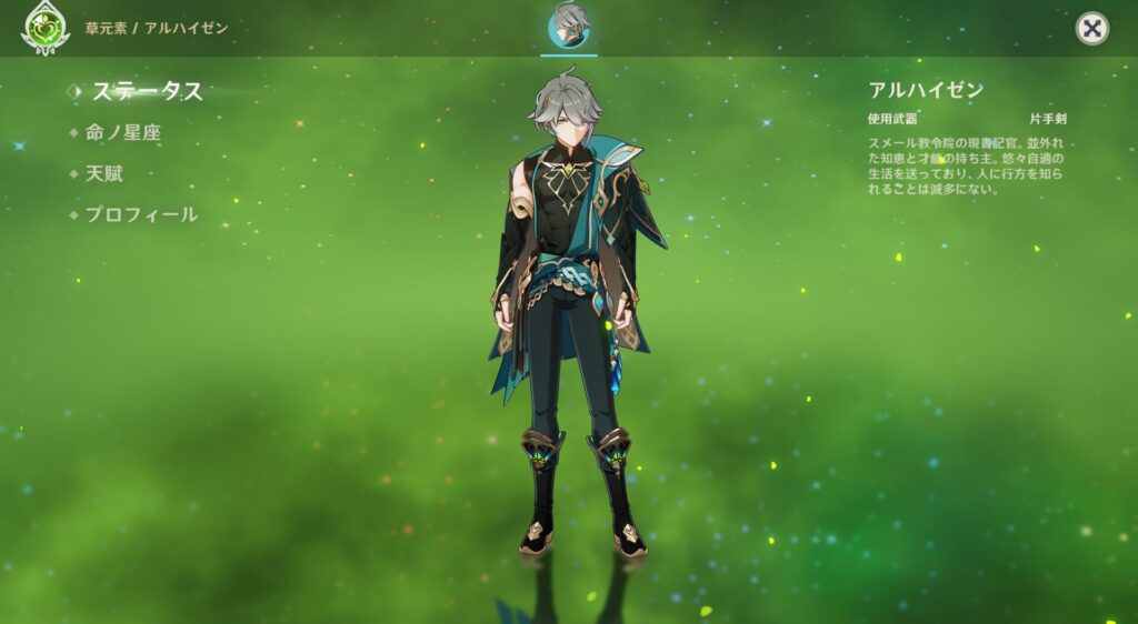 職業は書記官とのことなのですが、事務員にあんな腹筋いるの…?いや、もしかすると僕の考えている書記官と実際にアルハイゼン氏が務めている書記官に誤差があるのかもしれんが…!