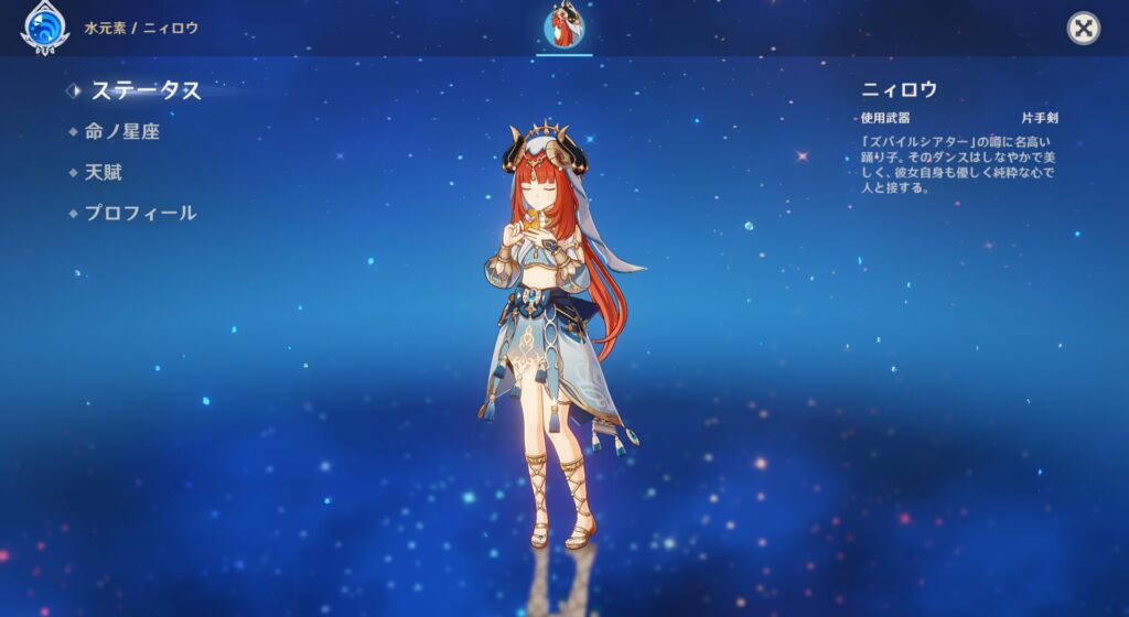 スメールの子って衣装が華美で可愛いんだよ!しかもニィロウちゃんはうちで圧倒的に不足している水属性です。でも少女タイプだよな?この体格はな。とりあえず今は行秋いるし、アタッカーかどうかもよく分かんないんだから今回はパスしましょうか…!