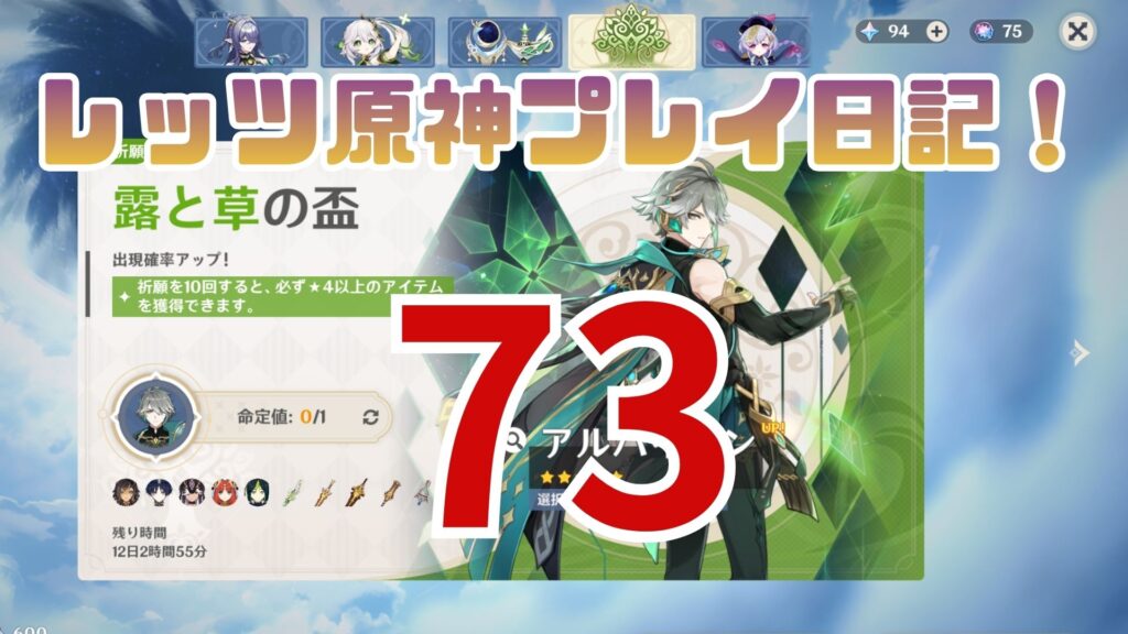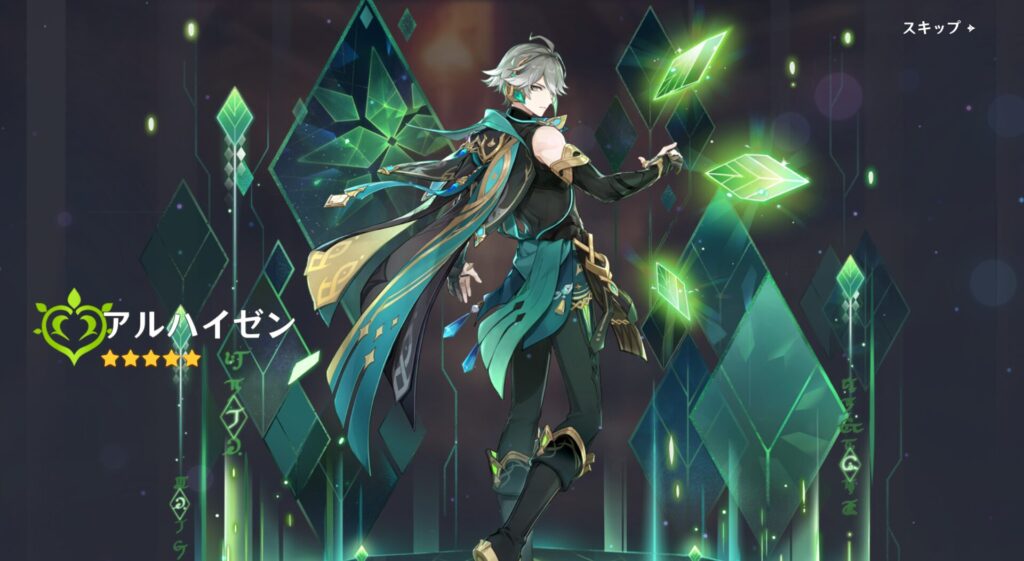 結構前にZ戦士のように各元素のアタッカーを揃えたいって言ってたじゃないですか。で、以前は草アタッカーとしてキィニチさんを引こうとしたけどできませんでした。だから今回はアルハイゼン氏を仲間にして草アタッカーにしちゃおうぜ!という算段ですね。