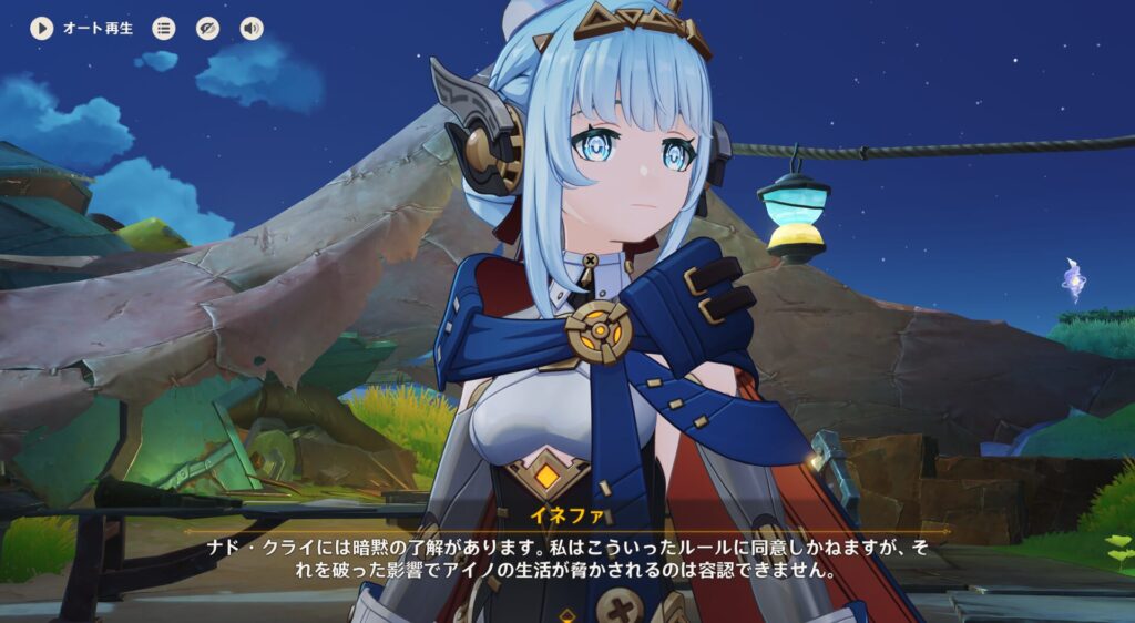 という微笑ましい会話なんですが……何故かモンド人はナドクライに出入りしてないってことが分かったんだよな。事情は分かりませんが、ファルカ関係の何かのような気はします。あと酒の好き嫌いで何かあるかも(酒が好きな奴は世界大炎上前の民族のDNAが強いとか)という話をしたことがあるんですけれど、それに関係しているのかもしれませんね。モンド人はナドクライに行くと体調が悪くなるとかさ。