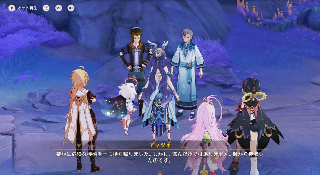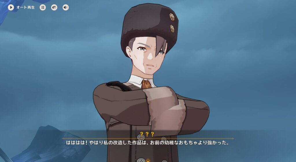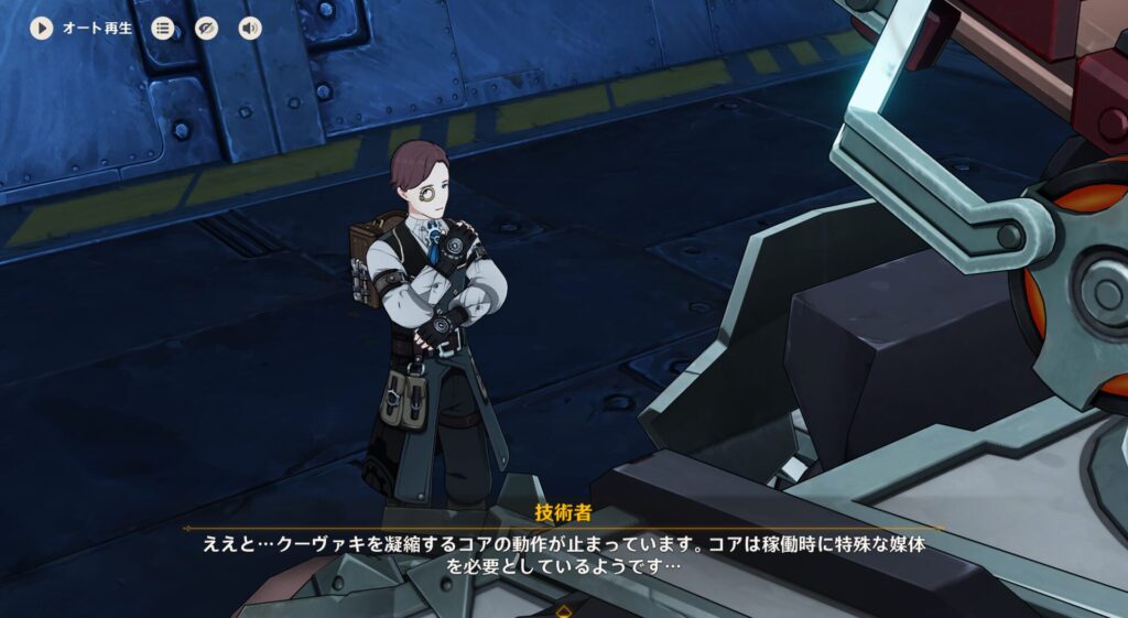 で、どうやらこいつは何らかの研究者でして、以前にクーヴァキと機械を組み合わせたら強いということに気付き立証しようとしたそうです。ところが技術が足りなかったのか、霜月の村落やクーヴァキの研究を独占しているファデュイから鼻で笑われたそうですね。