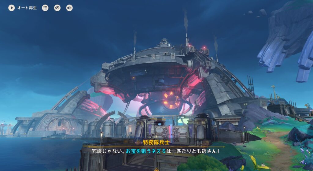 遠いな?!ちな現地でちょろっと特務隊?とかいうのとちょっと殴り合いになりましたが、これがクーヴァキの研究局だって。どうやらファデュイ関係の施設のようです。まあ、治安を乱していらんことすんのほぼ100の確率であいつらやからな!そんな予感はしてたけどな!