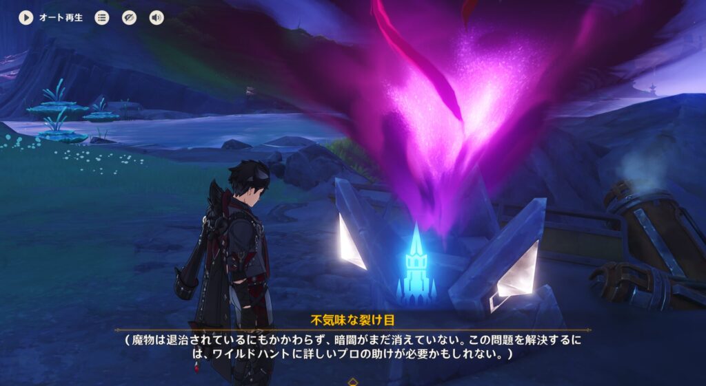あとワイルドハントをしばいた後に残っていた不気味な裂け目っていうのが全然消えてなくて、なんかプロ呼んだ方が良いかも?とかいう話でした。ワイルドハントの駆除業者みたいなのがいるんでしょうね。