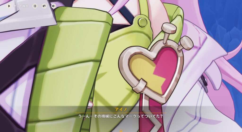 あ、これイネファちゃんからもらったネジについてたマークじゃねーか。なんだボスのところの印章だったのか。敵勢力が増えたかと思って焦ったぜ…!で、その機械にはボスのハートマークがついてたので、この里で保管されている機械は0カロリーで間違いなさそうです。このマーク、バラしても改造しても絶対消えない処理が施してあるそうですね。すげー!