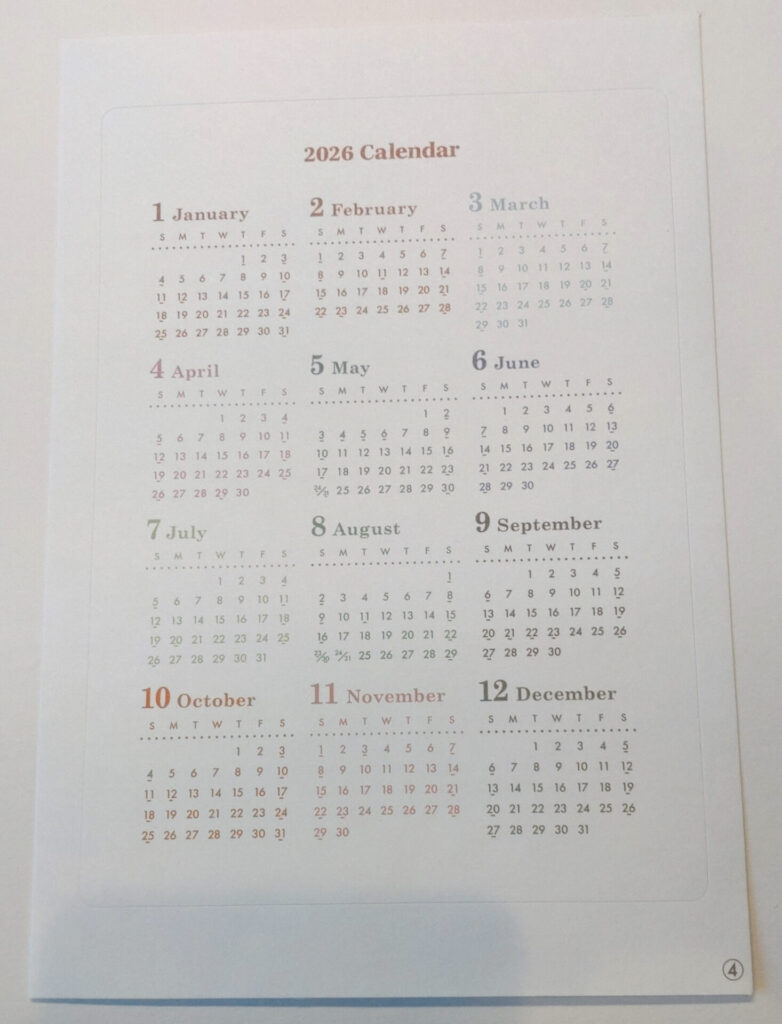 で、今回すごくいいものを発見したのでちょっとご紹介しようと思うんですけれど…それがこちらですね。Sticher sheet calendar 2026です。